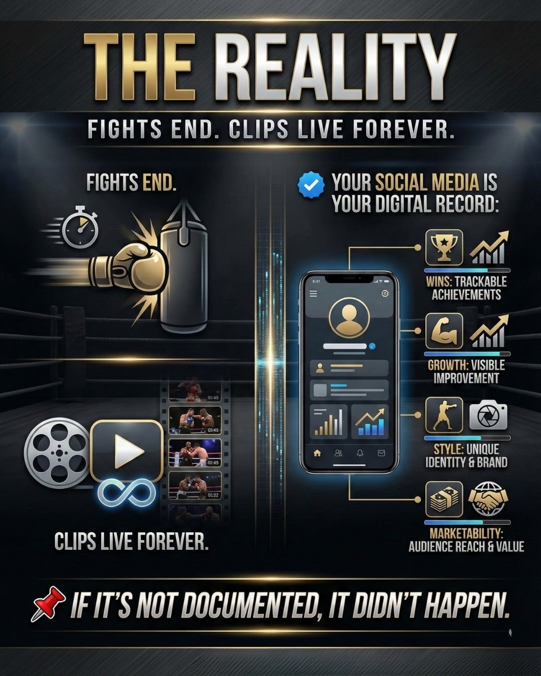 It’s your digital fight record: clips, growth, proof of work.