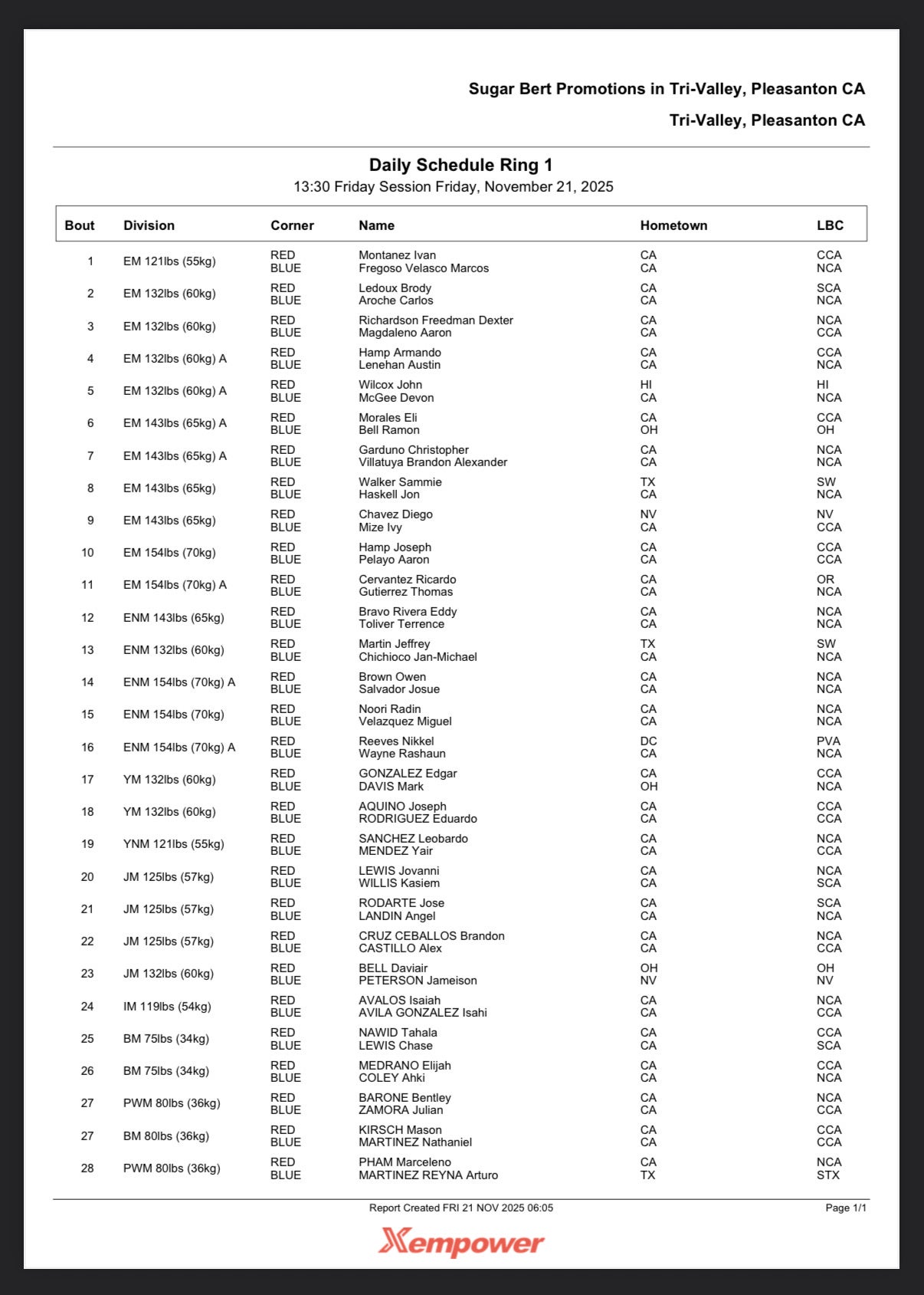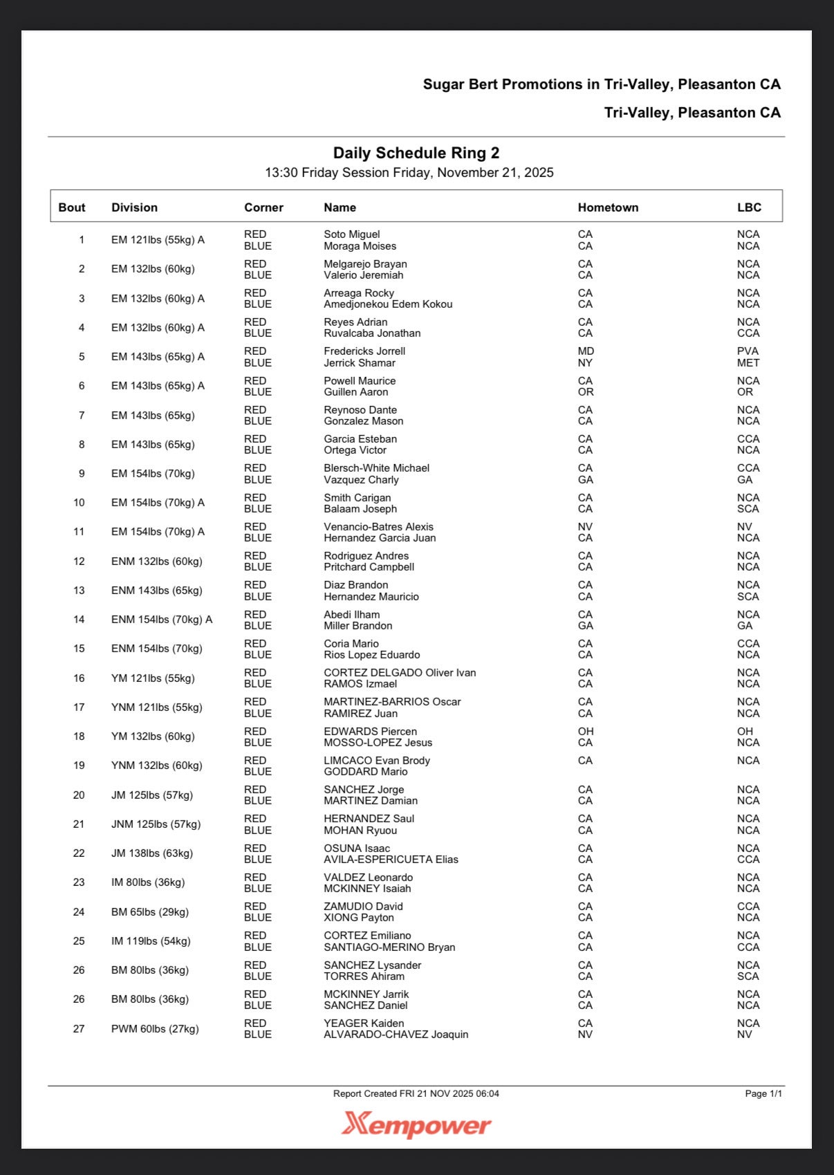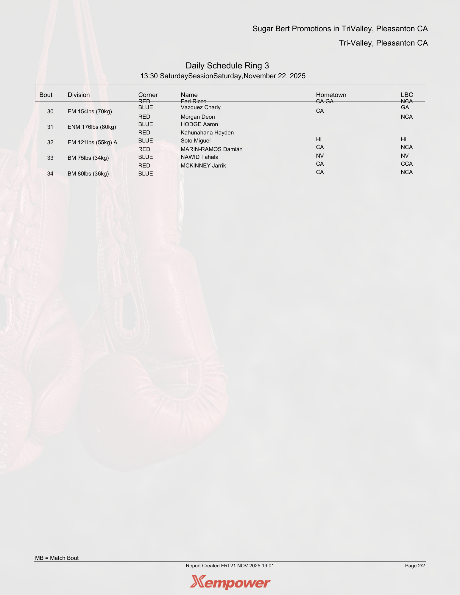 CHAMPIONSHIP SUNDAY BOUT SHEETS RING 2 π₯