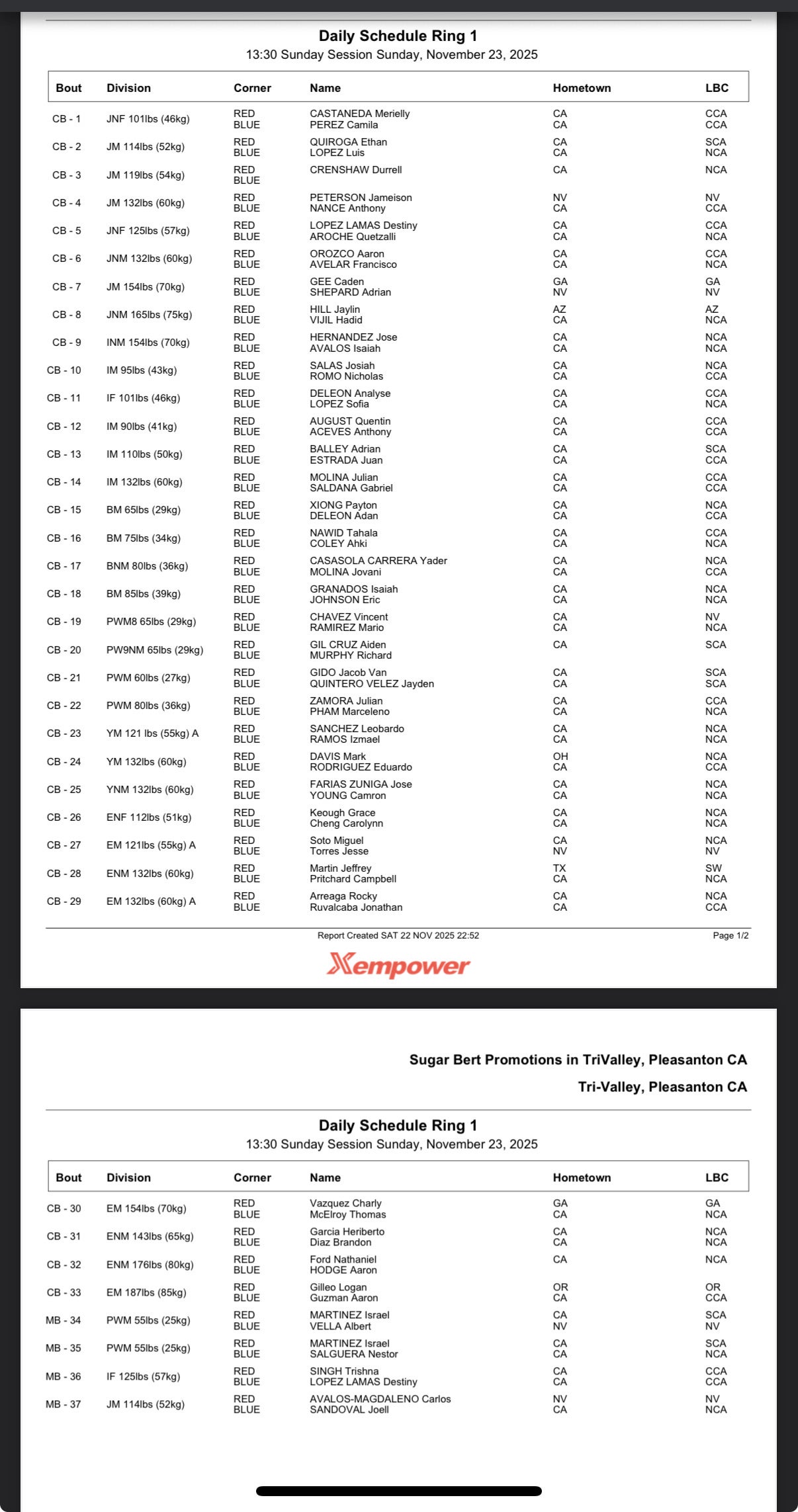 CHAMPIONSHIP SUNDAY BOUT SHEETS RING 2 🥊